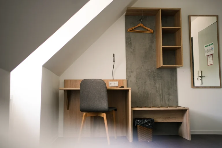 Das besondere Flair Kamens spiegelt sich in den Fluren und Zimmern wider, wo Fotografien auf Acrylglas das moderne und historische Kamen vorstellen. Alle Zimmer verfügen über Flachbildfernseher und freies W-Lan. Die Bäder sind in schlichtem Weiß gehalten und mit Duschbad und Fön ausgestattet. Das Zimmer ist mit Laminatausgelegt, das Doppelbett ist 180x200cm und das Einzelbett 90x200cm.